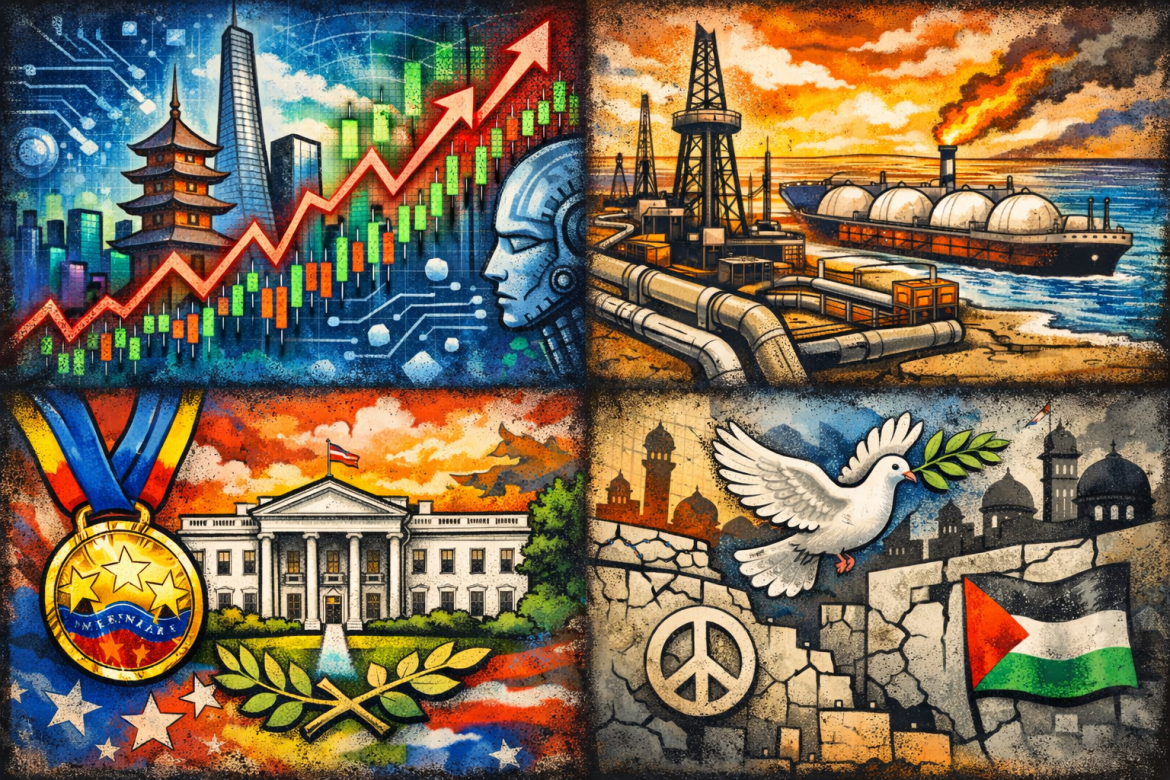 Global markets and geopolitics set the tone on Friday, with Asian equities advancing on renewed optimism surrounding artificial intelligence, the Japanese conglomerate Mitsubishi Corp. striking a landmark US shale acquisition, and US President Donald Trump making headlines regarding Venezuela and Gaza.